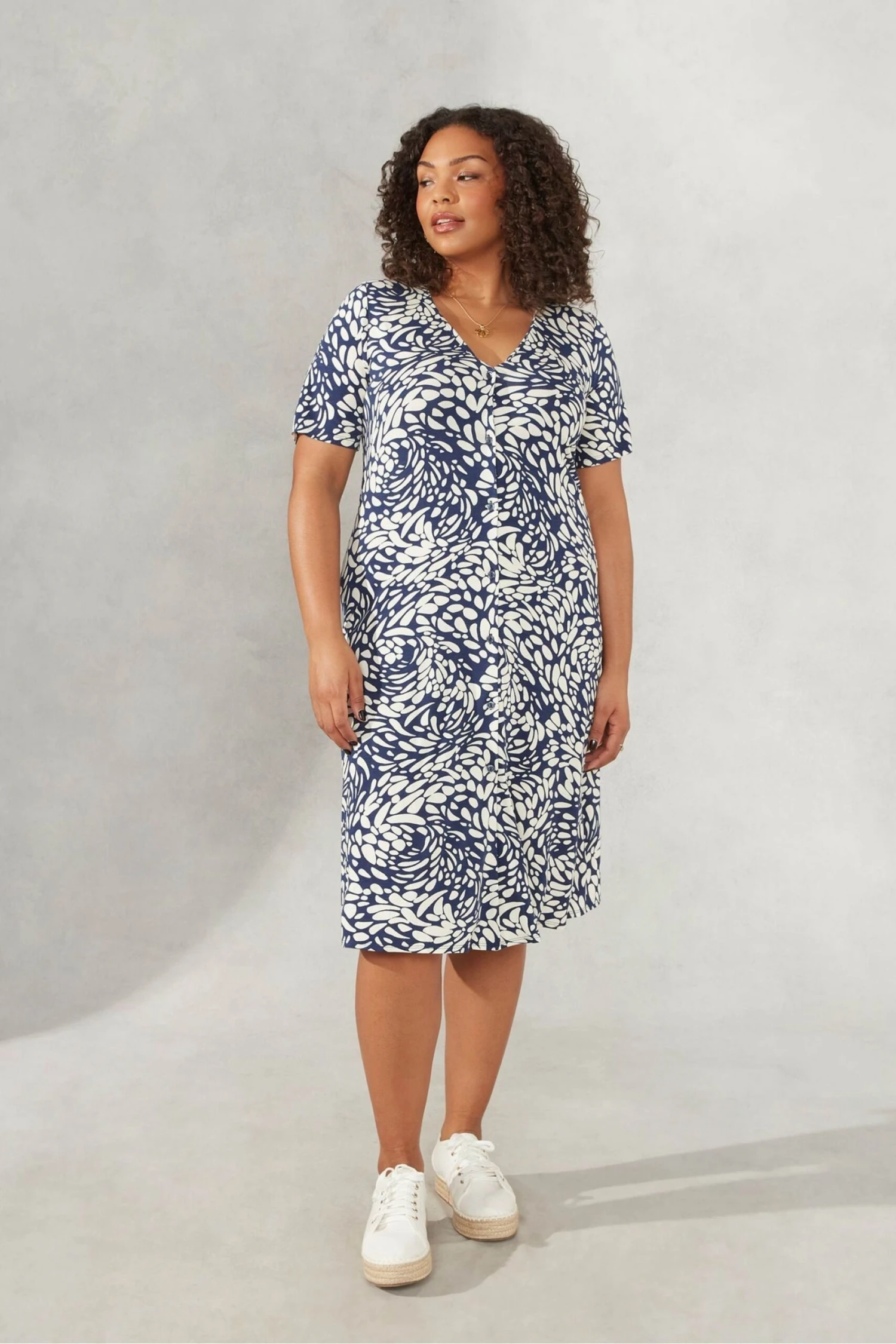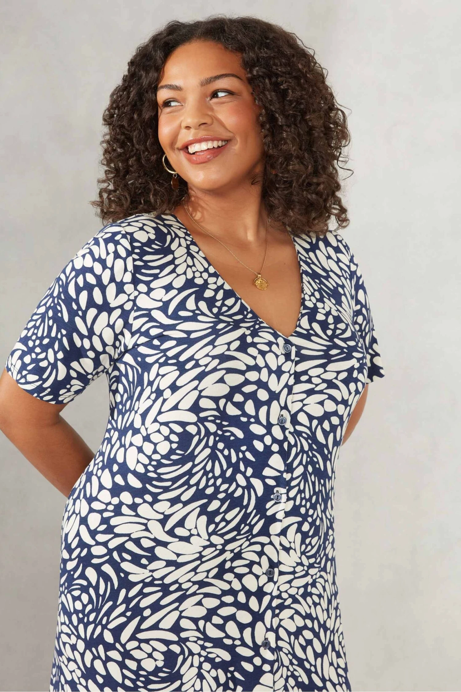 Live Unlimited Curve – Hemdkleid Mit Kieselprint Und V-Ausschnitt, Blau